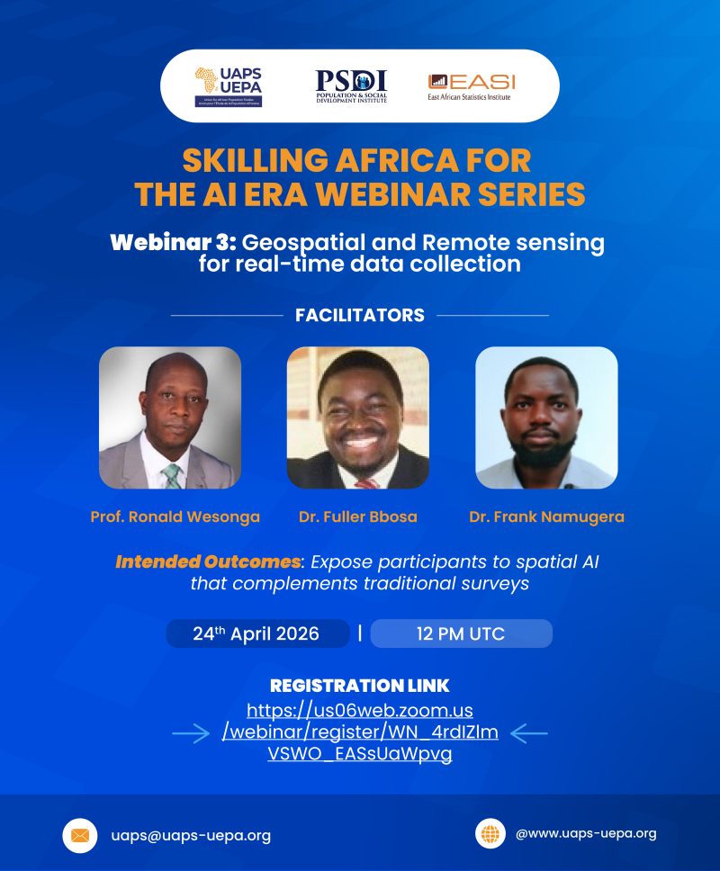 The Union for African Population Studies (UAPS) in collaboration with the Population & Social Development Institute (PSDI) and the East African Statistics Institute (EASI) is organizing an 18-part webinar series that seeks to build foundational and emerging data science skills among students, researchers, development partners, and policymakers.